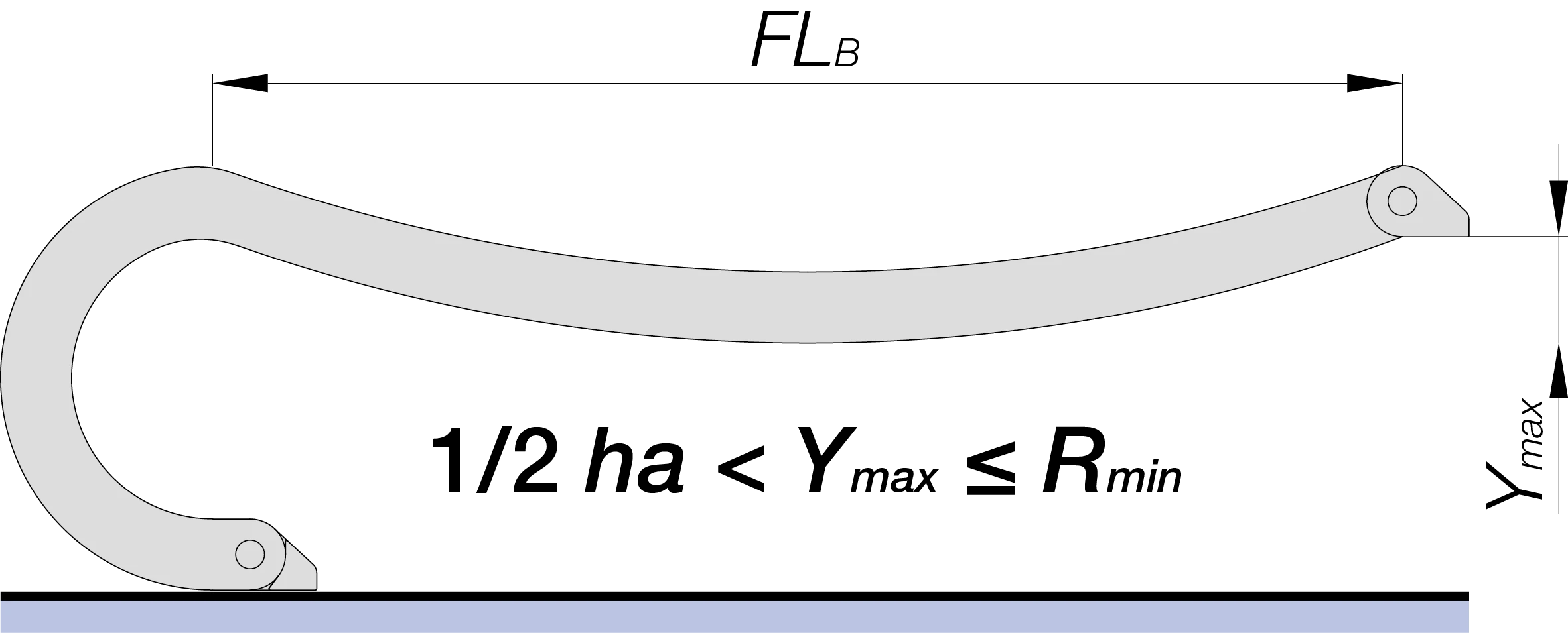 FLB:拖链运行中最大扰度大于1/2拖链外高但不大于所用拖链系列的最小弯曲半径,即1/2 ha < Ymax ≤ Rmin 。