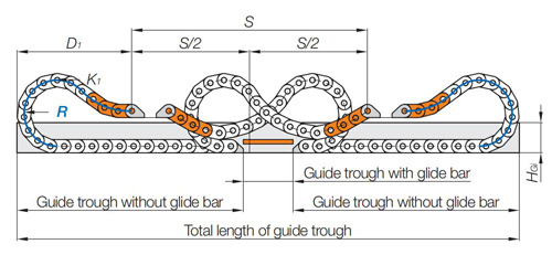 For applications with short travels and low fil weight, support is not necessary. If, however, the travels are long and the fill weight is high, the chains must then be supported either in whole or in part.