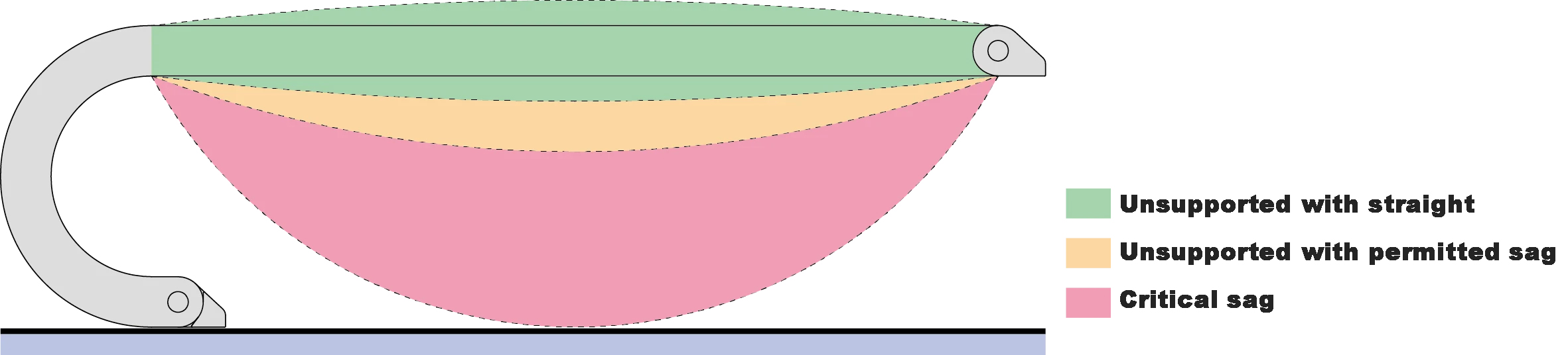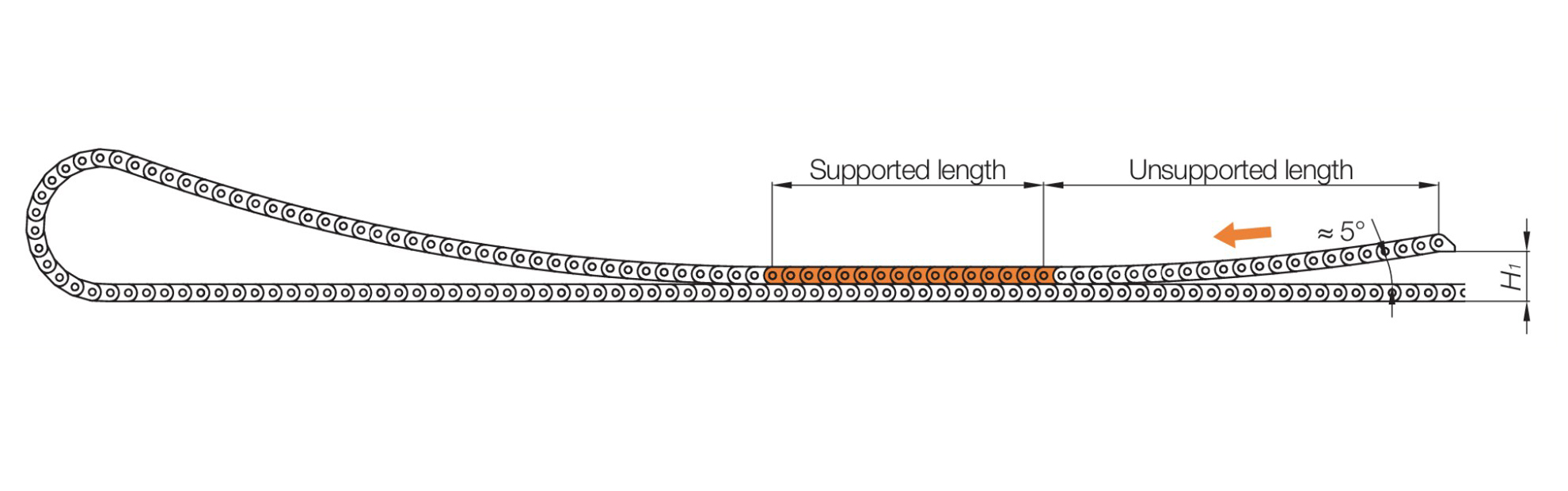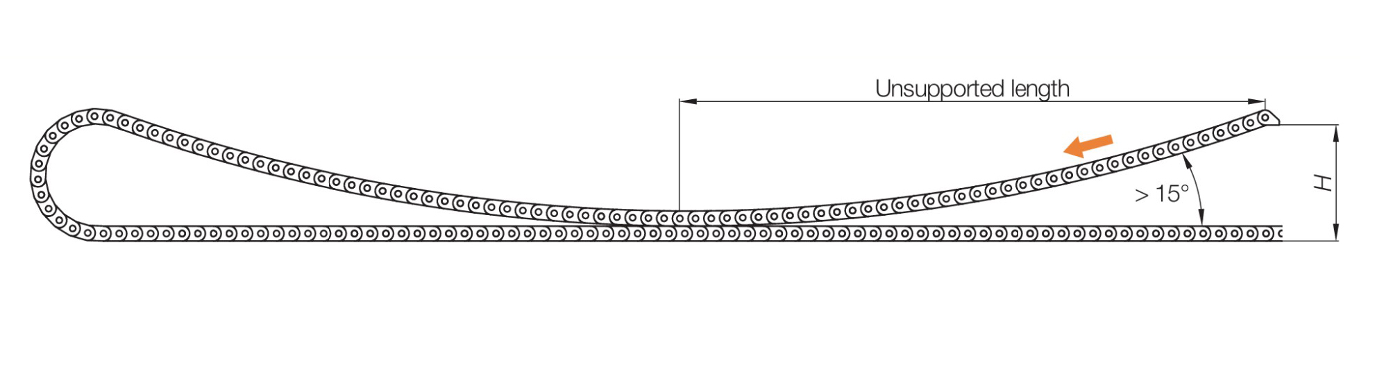 Side-mounted chains can be used unsupported to a limited extent. The unsupported length is dependent on the following factors: