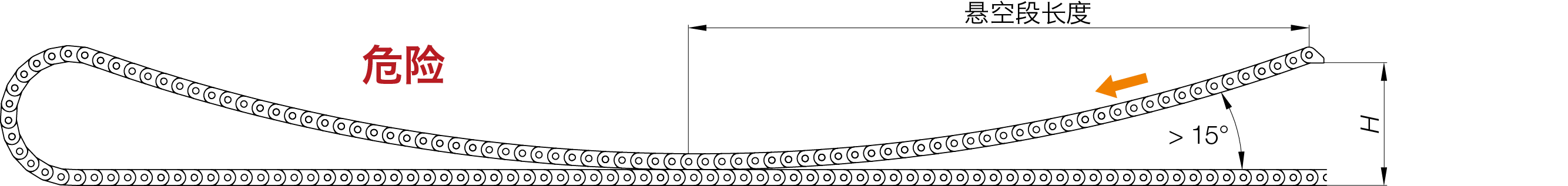 危险塌腰会极大影响拖链使用寿命和设备安全,设计时应避免。拖链在长时间使用后如出现危险塌腰,则需要更换。