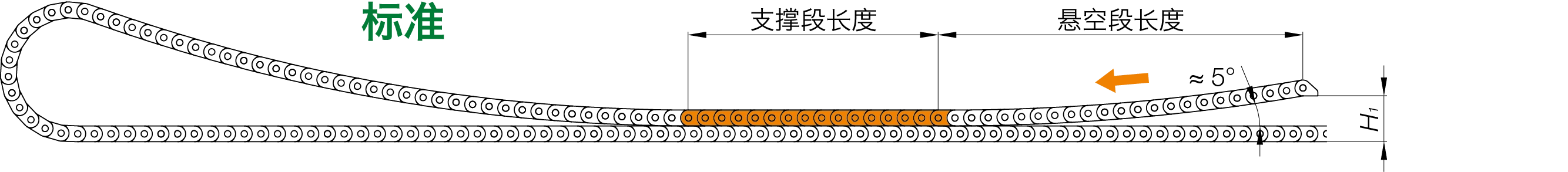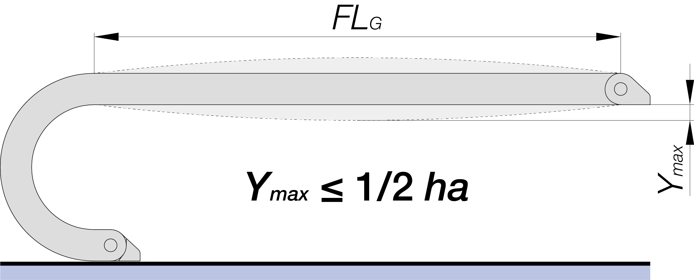 FLG:拖链运行中向上拱起,或成直线,或最大挠度不大于1/2拖链外高,即Ymax ≤ 1/2 ha 。