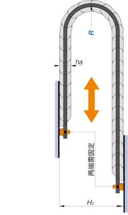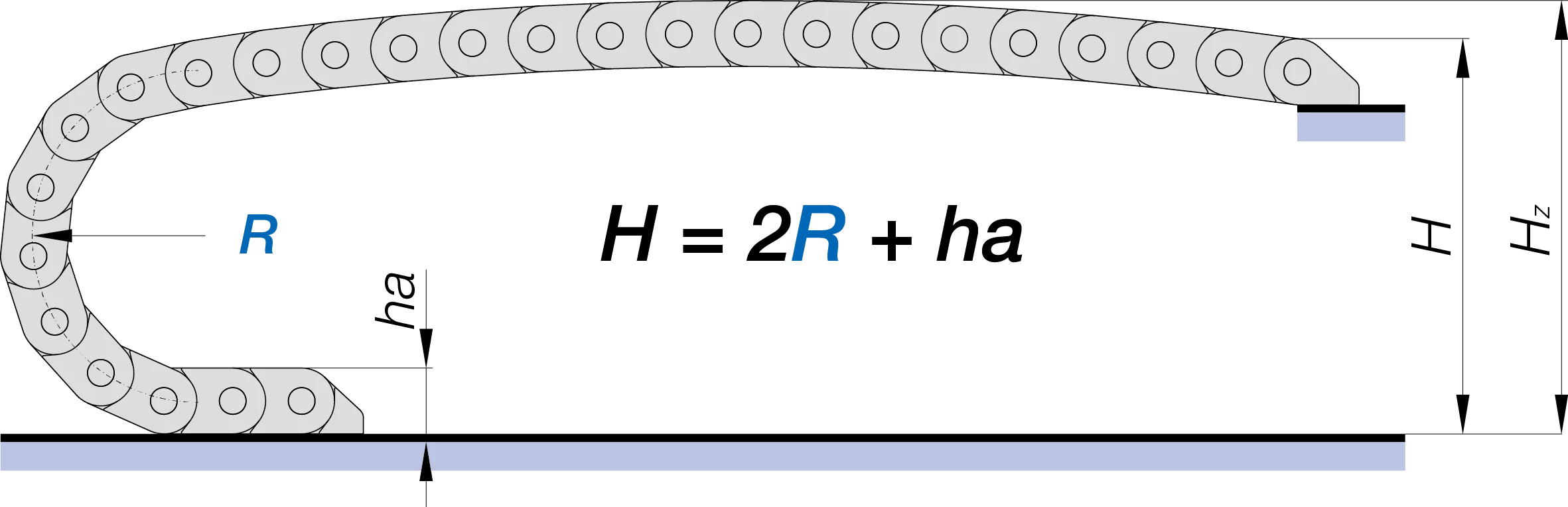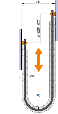 无预应力拖链所需安装空间:HZ = 2 R + ha