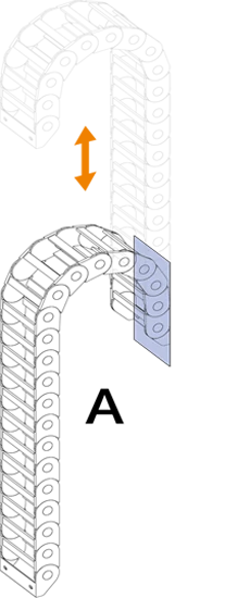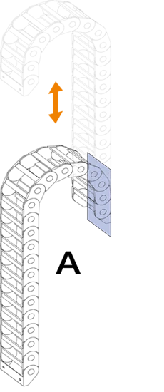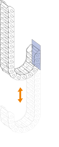 单条拖链滑行:移动端安装高度降低和链节反装(标准配置)