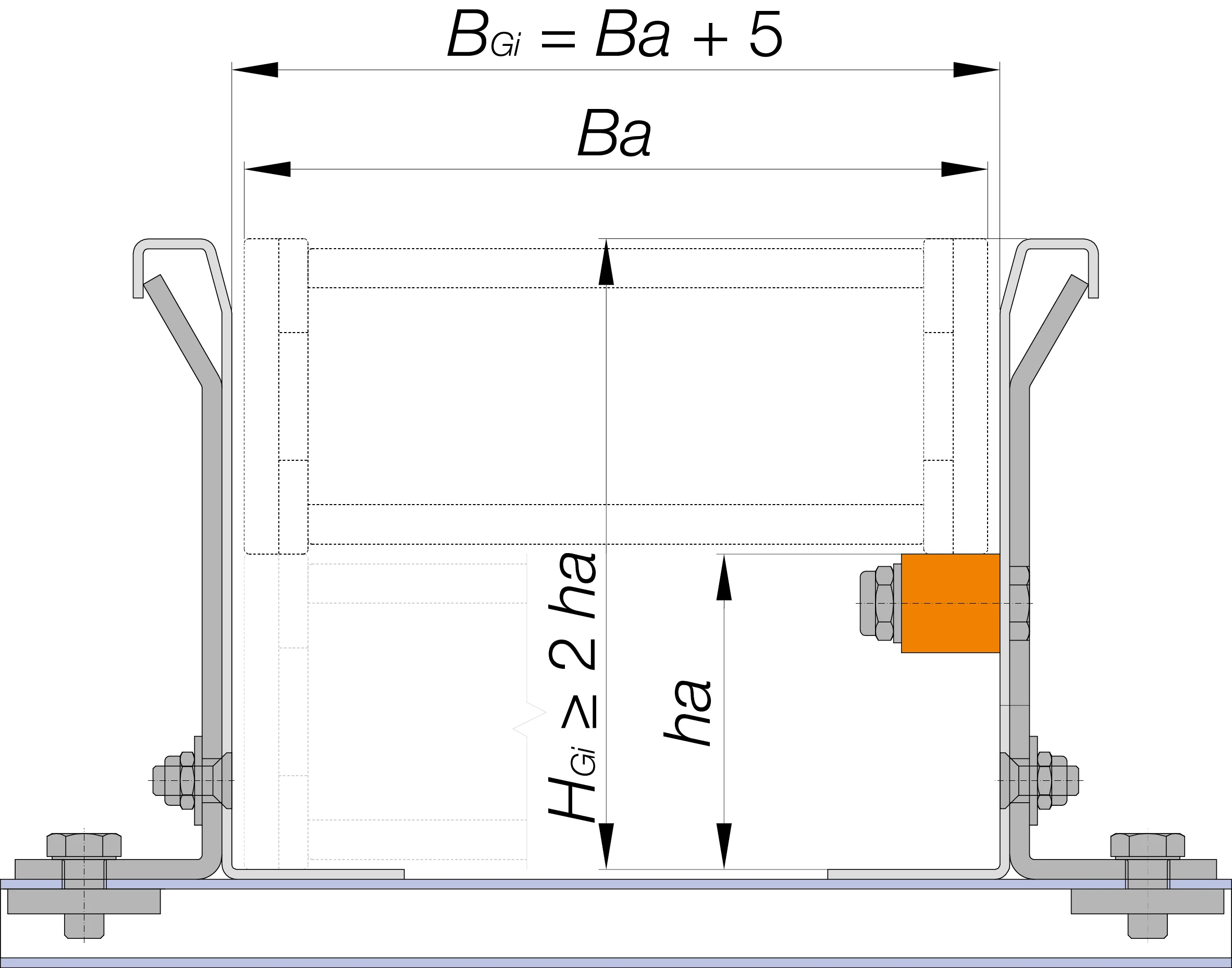 导向槽内高HGi至少为拖链链节外高的2倍:HGi ≥ 2 ha
