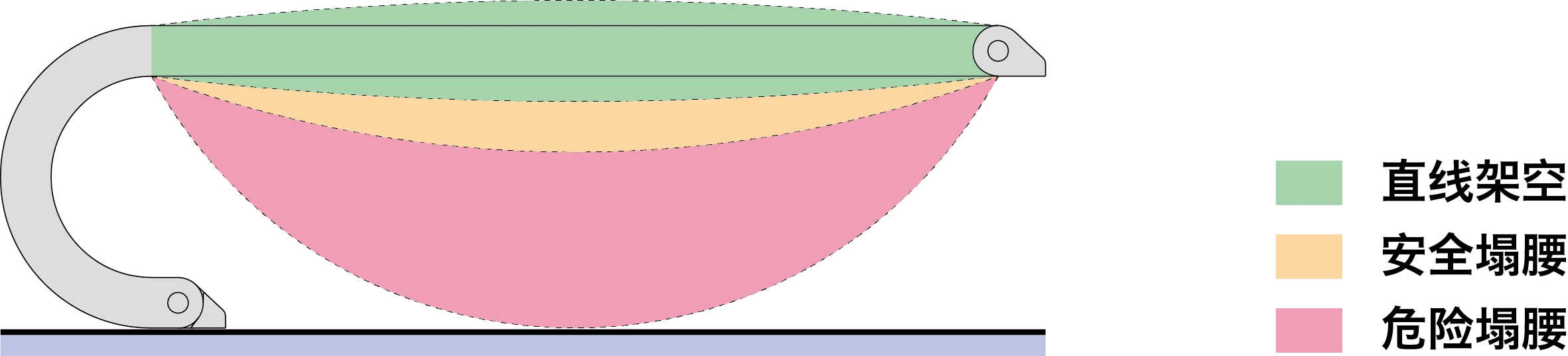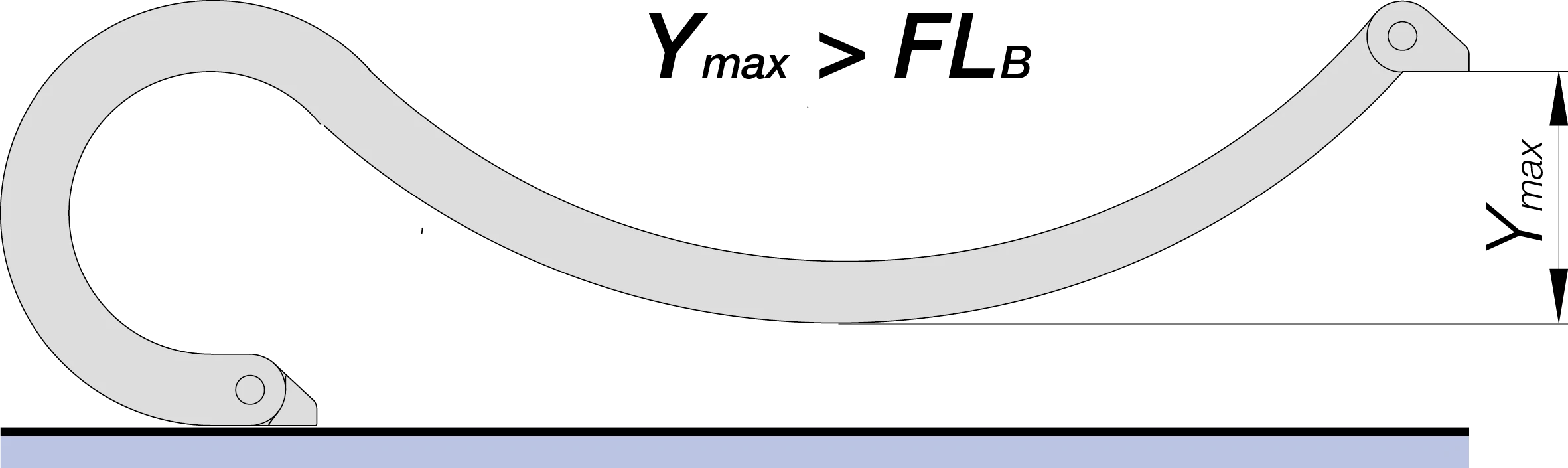 危险塌腰:拖链运行中塌腰大于FLB,即Ymax > FLB 。