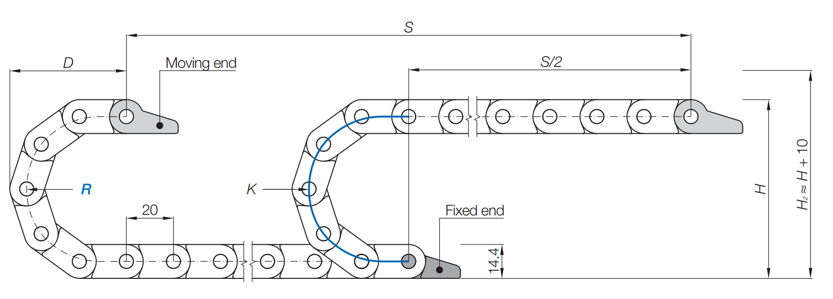 Cable chain length LK = S/2+K1