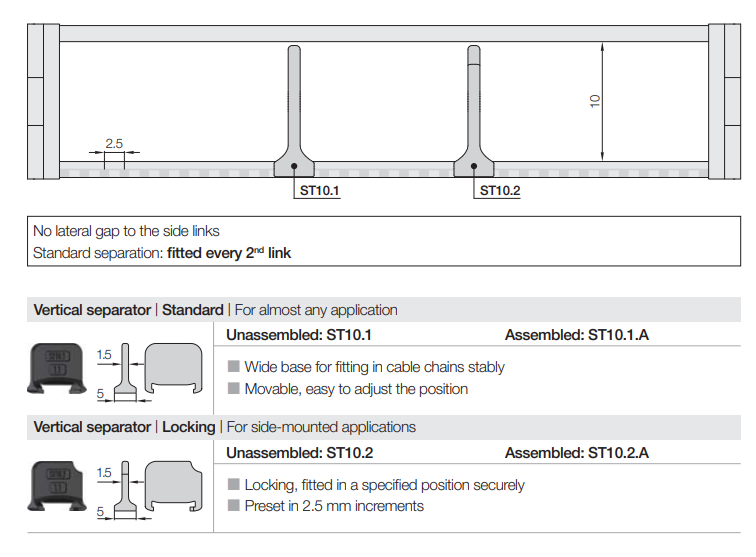 - Inner widths Bi : 10 - 50 mm