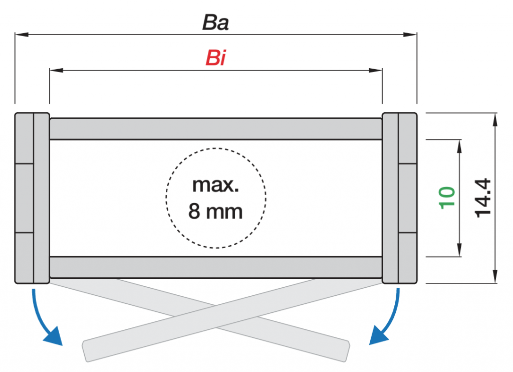 | 拖链代码 | Bi[mm] | Ba[mm] | R[mm] | 重量[kg/m] |
