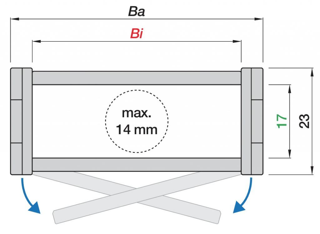 | 拖链代码 | Bi[mm] | Ba[mm] | R[mm] | 重量[kg/m] |