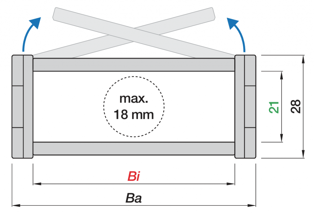 | 拖链代码 | Bi[mm] | Ba[mm] | R[mm] | 重量[kg/m] |