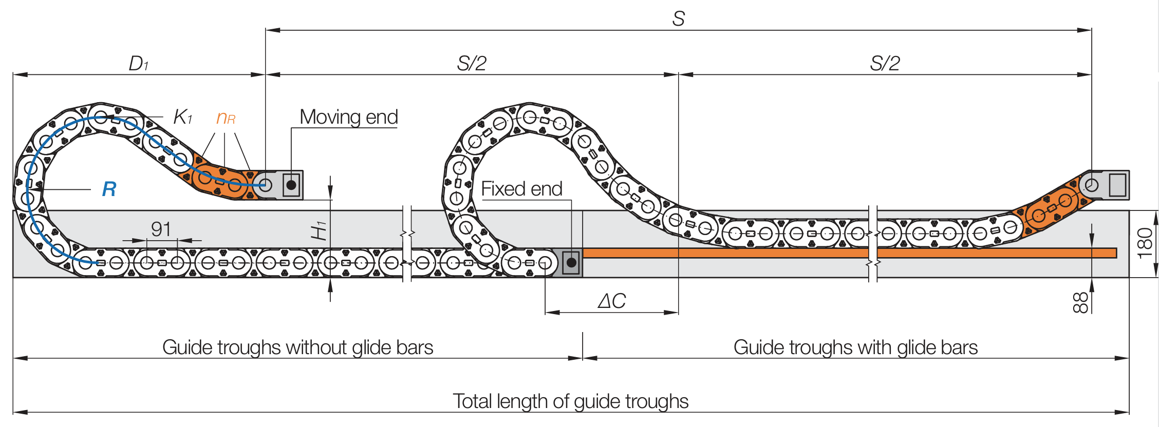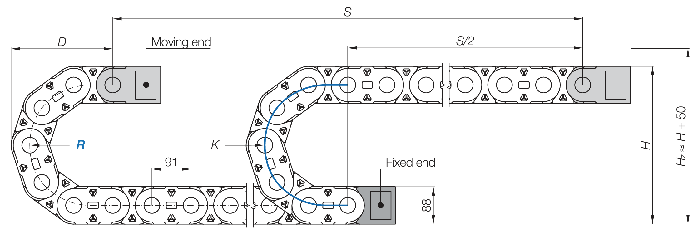 Cable chain length LK = S/2+K