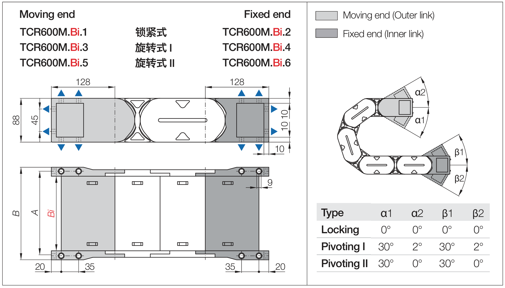 | [mm] | MFB Locking | MFB Pivoting I | MFB Pivoting II | [mm] | [mm] |